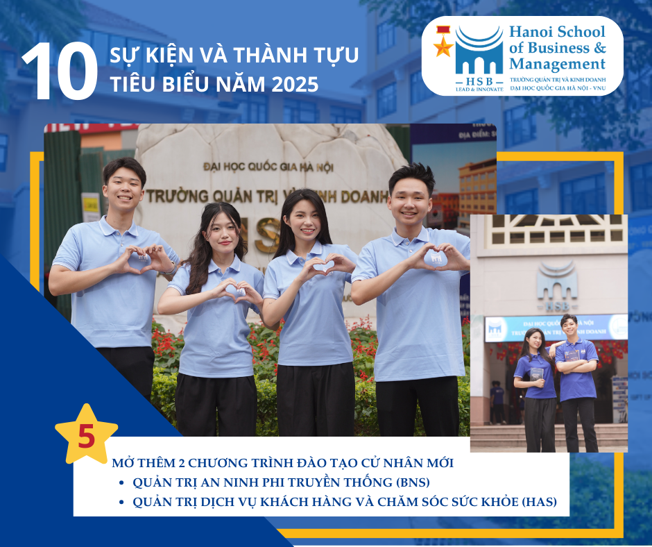 5.Trường Quản trị và Kinh doanh mở thêm 2 Chương trình đào tạo cử nhân mới: ngành Quản trị An ninh phi truyền thống (BNS) và Quản trị Dịch vụ khách hàng & Chăm sóc sức khỏe (HAS)