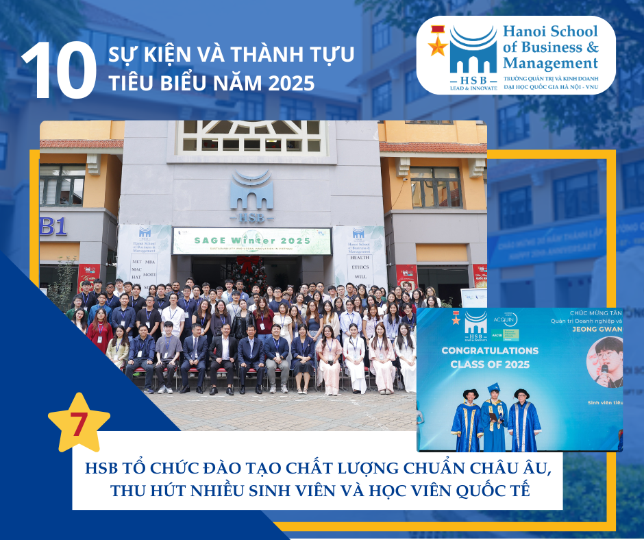 Khép lại năm 2025, Trường Quản trị và Kinh doanh trân trọng cảm ơn sự đồng hành, tin tưởng và gắn bó của đội ngũ giảng viên, cán bộ, sinh viên, cựu sinh viên cùng các đối tác trong và ngoài nước. Những kết quả đạt được trong năm qua chính là nền tảng quan trọng để HSB tiếp tục đổi mới, mở rộng hợp tác quốc tế và khẳng định vai trò tiên phong trong đào tạo nguồn nhân lực chất lượng cao. Bước sang chặng đường mới, HSB sẵn sàng bứt phá với khát vọng kiến tạo giá trị bền vững cho người học, cho cộng đồng và vững bước trong “kỷ nguyên vươn mình” cùng đất nước.