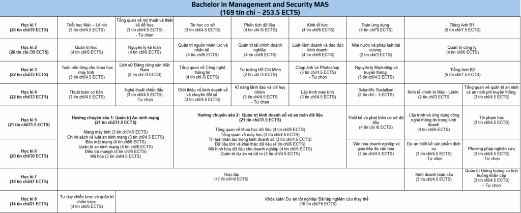 Các học phần chính trong Chương trình đào tạo Cử nhân MAS gồm: